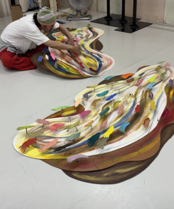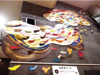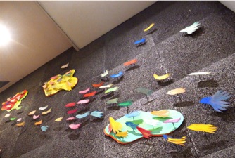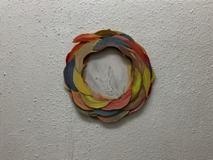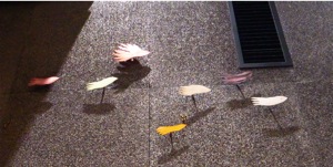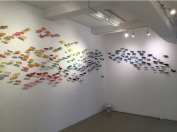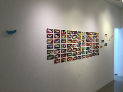 かつて亡くした自分の仲間を時折思い浮かべる。親父も死んで9年経つが今でも若くなったり年老いたりしながら夢に現れる。昨夜も現れた。ただ、自分に語りかけることはない。イメージが心に染み付いているのだろう。実体はとうに旅立ってしまったが、記憶の痕跡だけは幾層にも多重を連ね脳内に蘇る。制作したSwimming Birdもそのようなものかもしれない。国境も言語も超えて、泳ぐ鳥たちという実体が壁を這うように舞い、その母体となるくり抜かれた板は、その痕跡として様相を変えて多層色を重ねる。そしてその世界を風が通り抜けていく。自分はこの脳に刻まれた実体の抜け殻という記憶とともに、死ぬその時が来るまでそれらに彩りを施しつつ踊り過ごすのだろう。